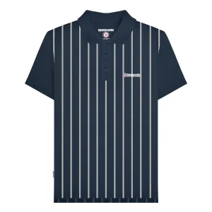Lambretta Heren Pinstripe Poloshirt (Marine, Wit)