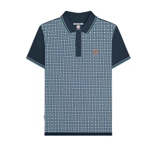 Lambretta Heren SS24 Houndstooth Poloshirt (Marine)
