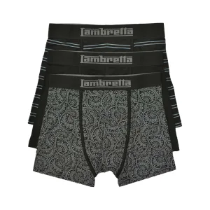 Lambretta Heren Paisley Boxershorts (Set van 3) (Zwart/Grijs)