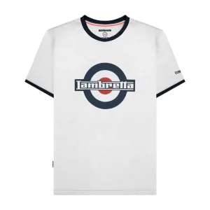 Lambretta Heren SS25 Ringer Logo T-Shirt (Wit/Marineblauw)