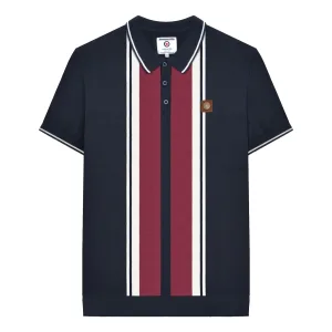 Lambretta Heren Greco Gestreept Gebreid Poloshirt met Korte Mouwen (Marine)