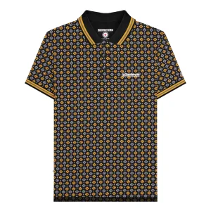 Lambretta Heren SS25 Geometrisch Poloshirt (Zwart/Goud)