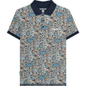 Lambretta Heren SS25 Paisley Gebrand Big & Tall Poloshirt (Marine/rookblauw)