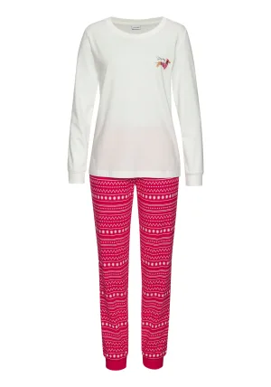 LASCANA Pyjama lichtbruin / knalrood / zwart / wit