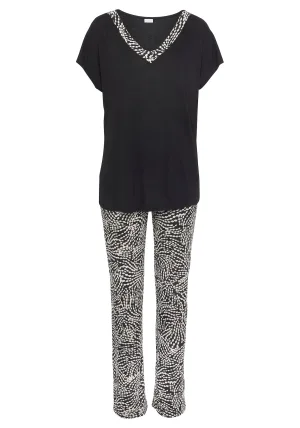 LASCANA Pyjamabroek navy / cranberry / zwart / wit