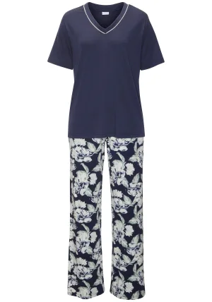LASCANA Pyjama donkerblauw / pastelgroen / wit
