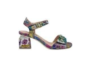 Laura Vita Nellao 33 damessandalen met sleehak, blauw met bloemenprint, van leer.