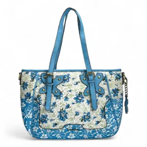 Laura Vita Aloe-02 Dames Schoudertas met Blauwe Bloemenprint en Verstelbare Bandjes