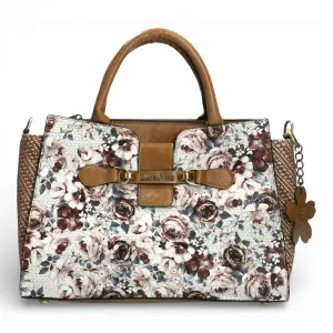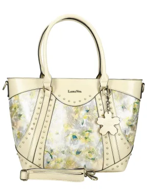 Laura Vita Aramis-08 Dames Schoudertas met bloemenprint en verstelbare bandjes, beige