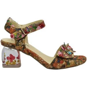 Laura Vita Marlene 12 damessandalen met bloemenprint, leren sleehak en sleehak, beige.
