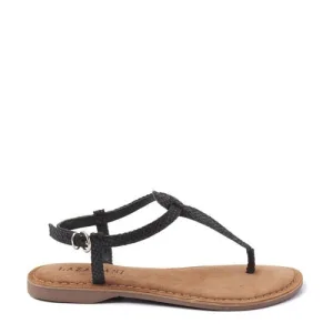 Lazamani leren teenslippers zwart