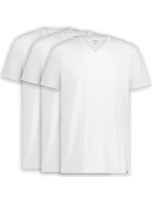 LEBASQ- Davis’ T-shirt voor heren – 3 pack – met V-hals – Extra lang – Geschikt als Ondershirt – Wit – XL – Katoen