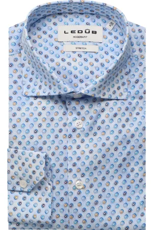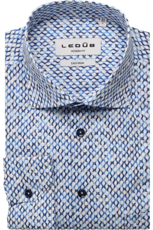 Ledub Overhemd Print Lichtblauw Borstzak