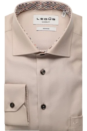 Ledȗb Overhemd beige, Gestructureerd