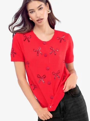 Lipsy Gebreid vest ‘Christmas’ knalrood
