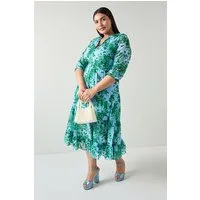 LK Bennett Eleanor Frill Midi Dress Green/blue