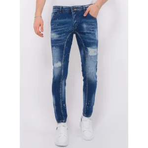 Paint Splatter Ripped Jeans Heren – Slim Fit -1075- Blauw