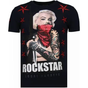 T shirt Heren met Print – T shirt Heren Grappig – Heren T shirt – Marilyn Rockstar – Rhinestone T-shirt – Blauw