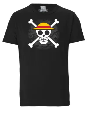 LOGOSHIRT Shirt ‘One Piece – Skull’ zwart