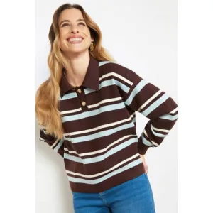 LOLALIZA gestreepte pullover donkerbruin