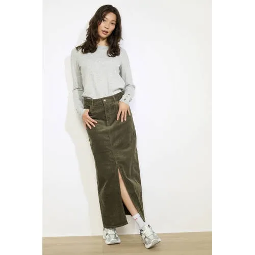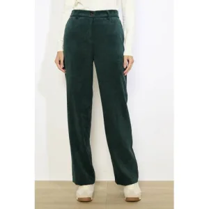 LOLALIZA corduroy wide leg high waist broek donkergroen