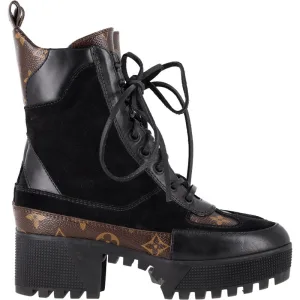 Louis Vuitton Suede Monogram Laureate Desert Boots in zwart gecoat canvas