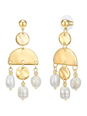 Lulu & Jane Oorbellen goudgeel / parelwit