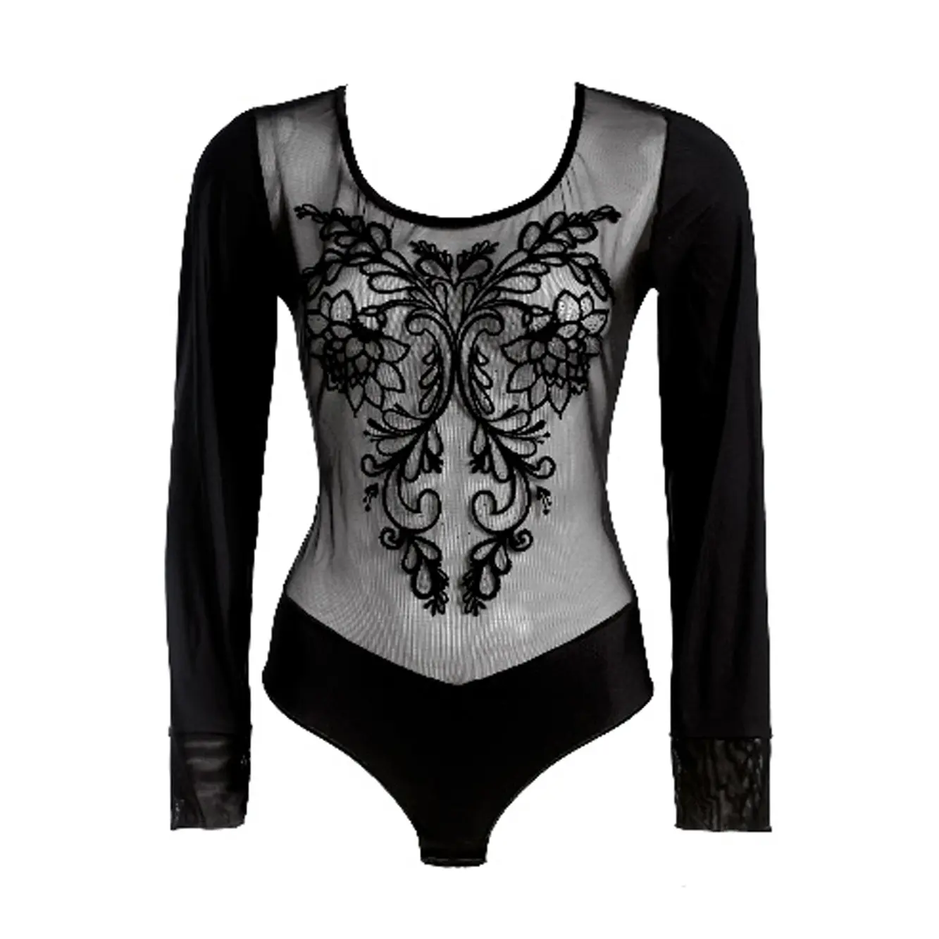 Body met lange kanten mouwen en hoge hals voor vrouwen Luna Micro Touch Lace
