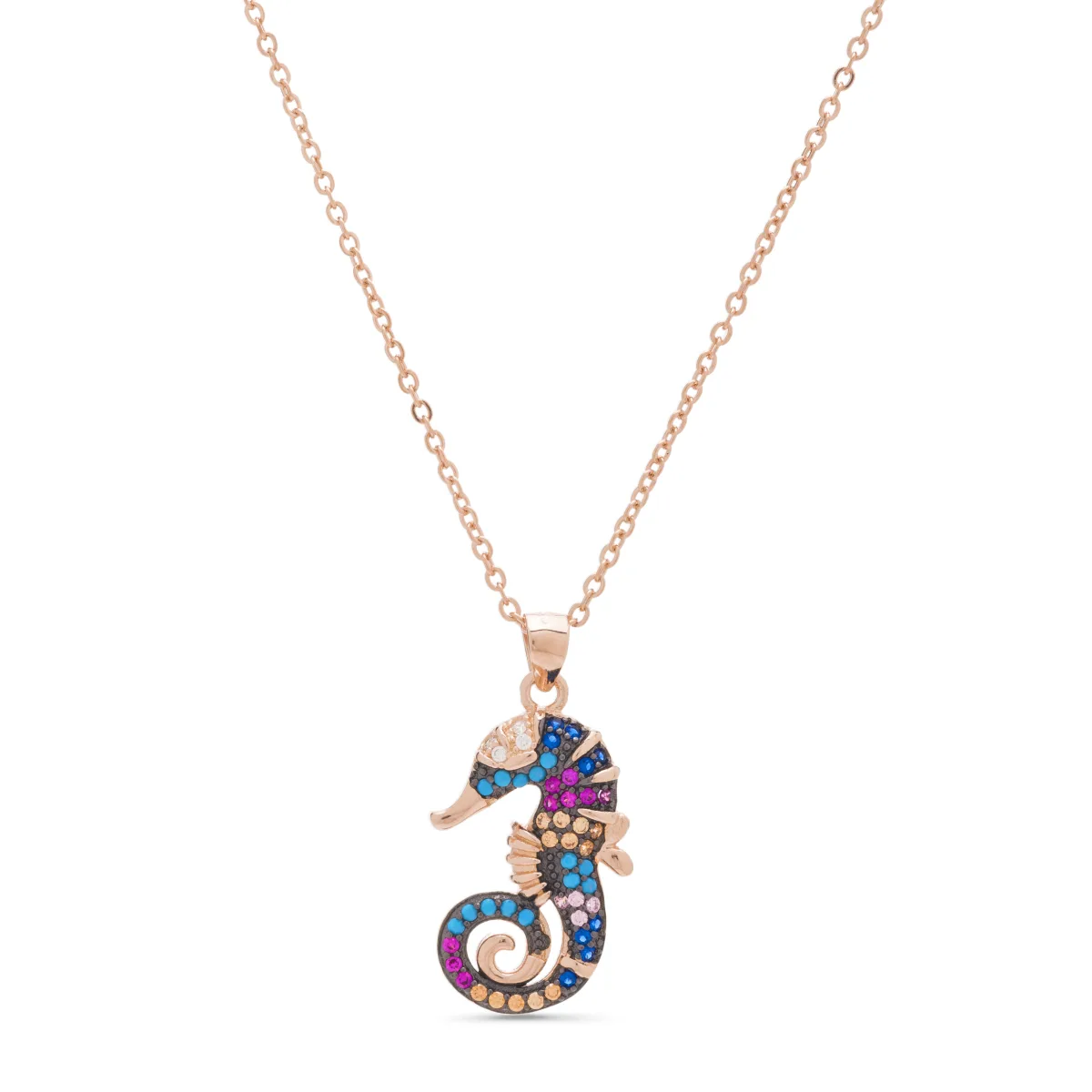Luxenter cawig halsketting in 925 sterling zilver en veelkleurige zirkonia met 18 karaat roségoud vergulde afwerking