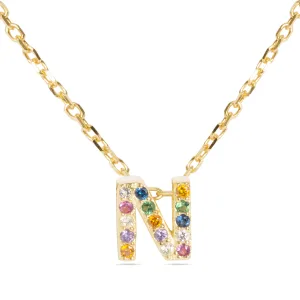 Luxenter Sterling Zilver 925 collier met Veelkleurige Zirkonia afgewerkt in 18K geel goud – Alfabet