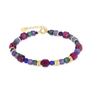 Luxenter 925 Sterling Zilveren Armband met Veelkleurige Natuursteen afgewerkt in 18K geel goud – Asela