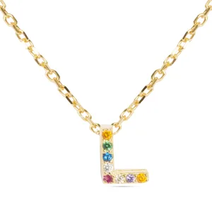 Luxenter Sterling Zilver 925 Ketting met Veelkleurige Zirkonia Afgewerkt in 18K Geel Goud – Alfabet