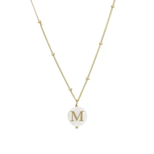 Luxenter-halskæde, alfabet i 925 sterlingsølv og hvid perlemor afsluttet med 18 karat gult guld