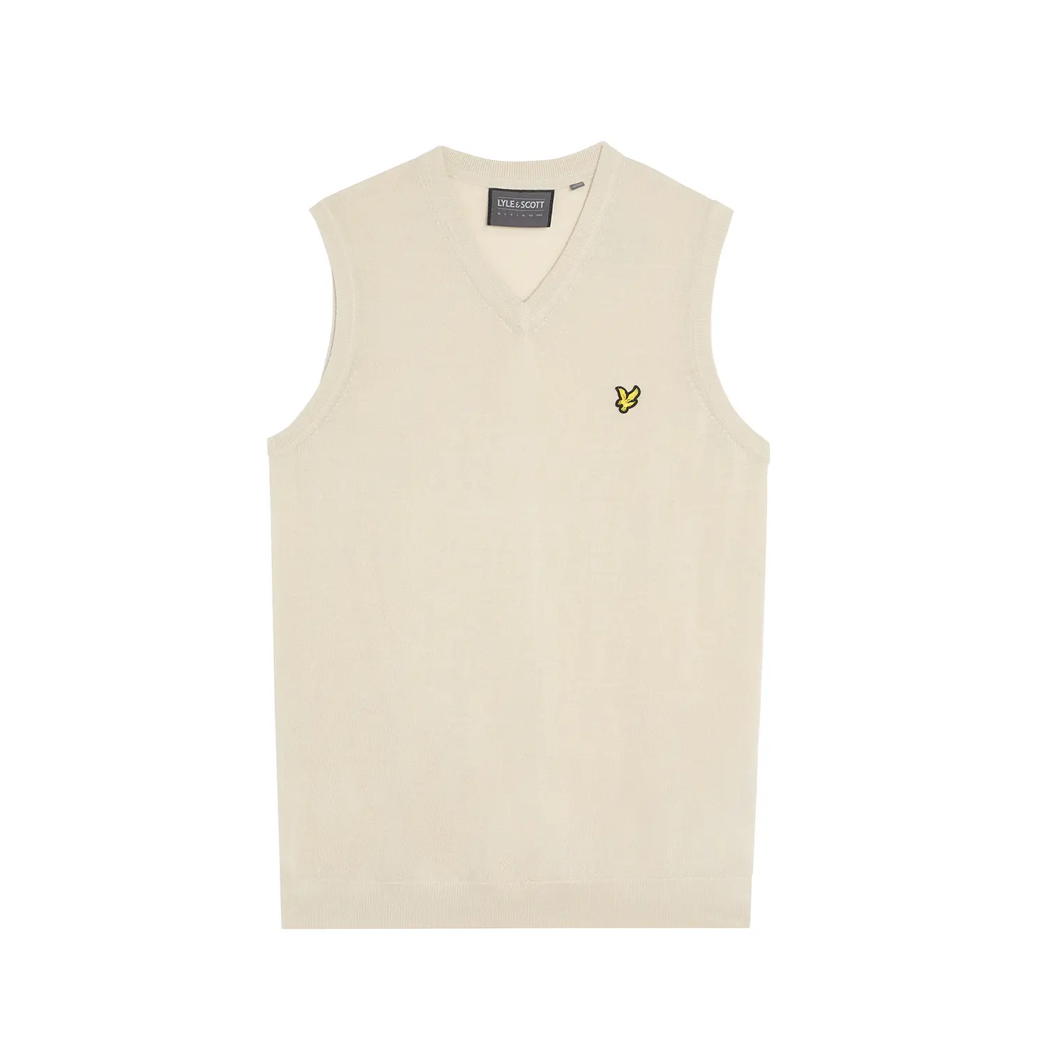 Mouwloze gebreide V-hals merinowol trui Lyle & Scott