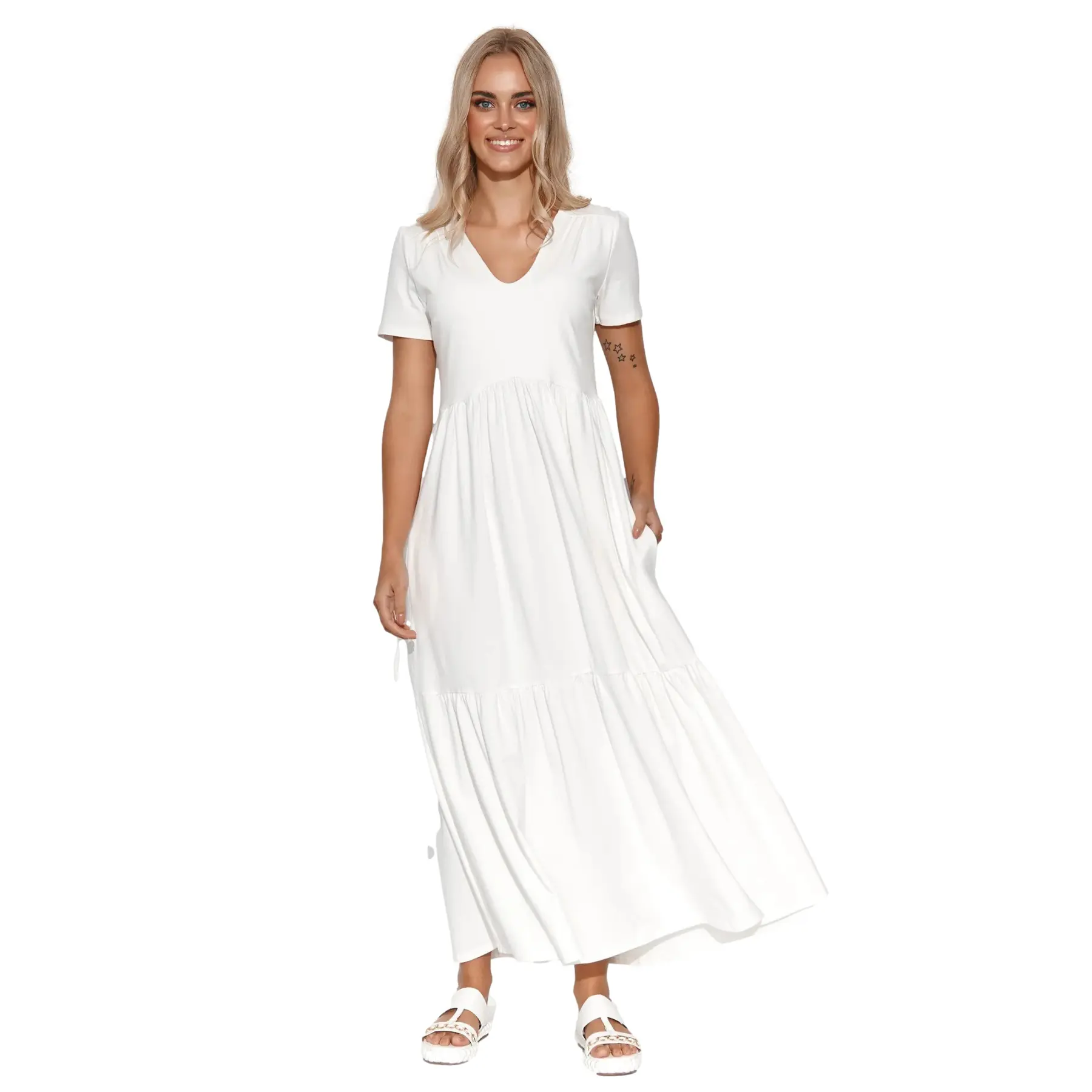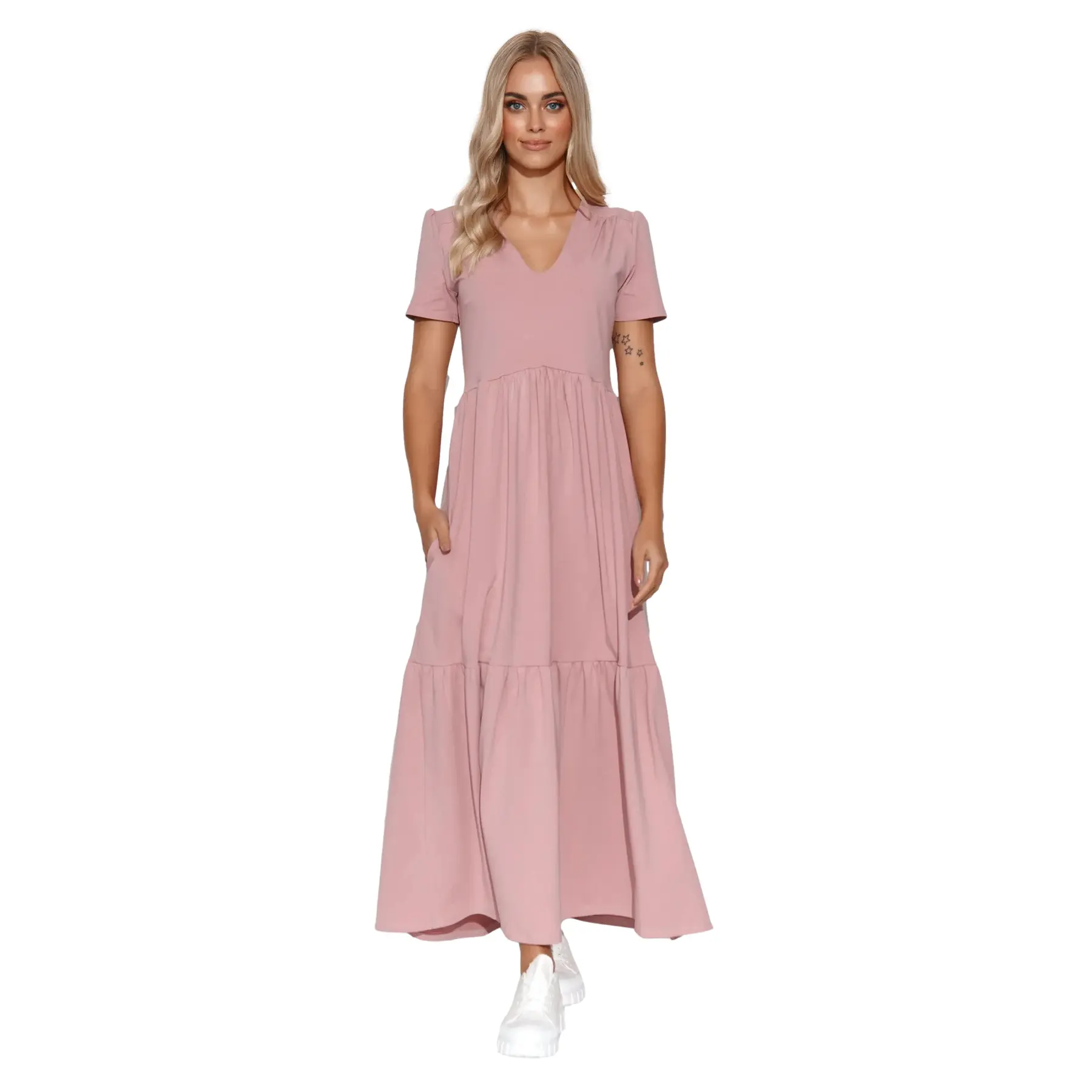 Maxi jurk met v-hals voor dames Makadamia