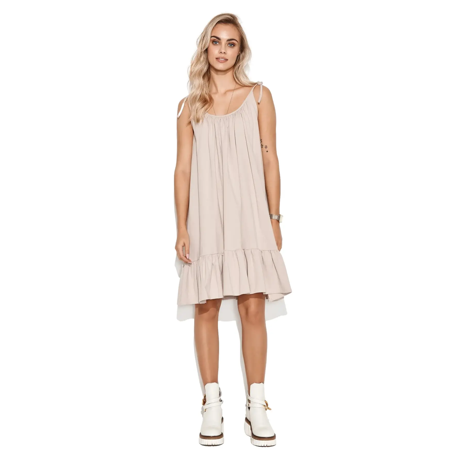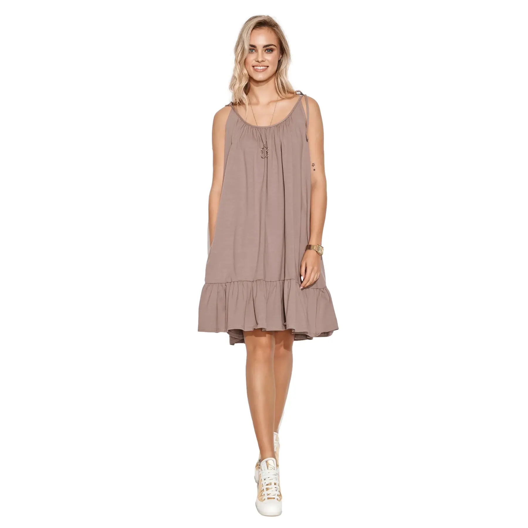 Korte jurk met geknoopte schouderbanden voor dames Makadamia