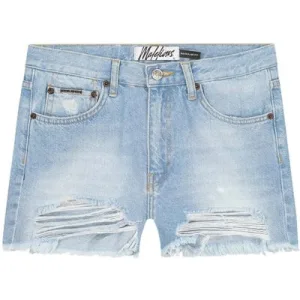 Malelions Women Damaged Denim Shorts | Light Blue