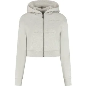 Malelions Women Cropped Zip Hoodie | Grey Melange