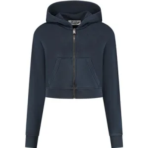 Malelions Women Cropped Zip Hoodie | Midnight Blue