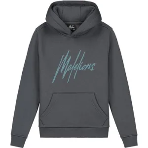 Malelions Junior Striped Signature Hoodie | Dark Grey/Ice Blue