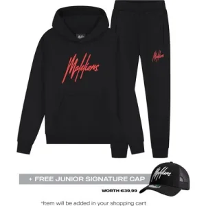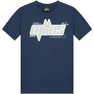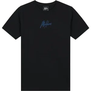 Malelions Junior Striped Signature T-Shirt | Black/Cobalt