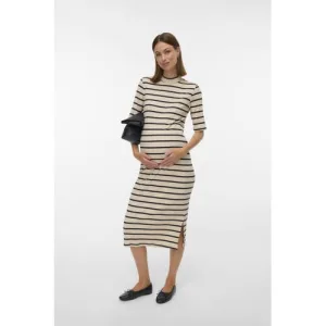MAMALICIOUS gestreepte zwangerschaps maxi jurk ecru