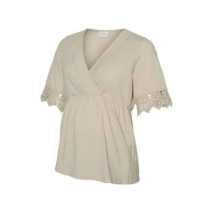 MAMALICIOUS zwangerschaps- en voedings T-shirt beige broderie