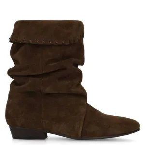 Manfield suède enkellaarzen met afzak effect donkerbruin