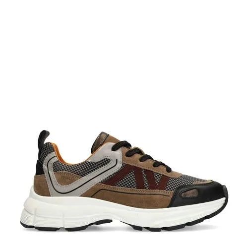 Manfield chunky leren sneakers bruin