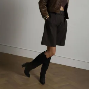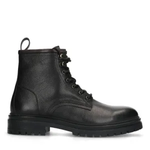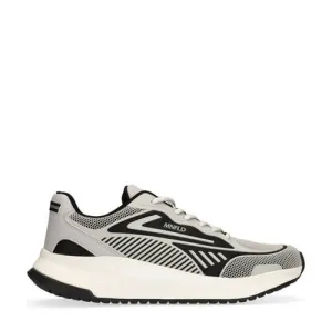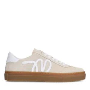 Manfield – Dames – Zwarte leren sneakers met off white details –