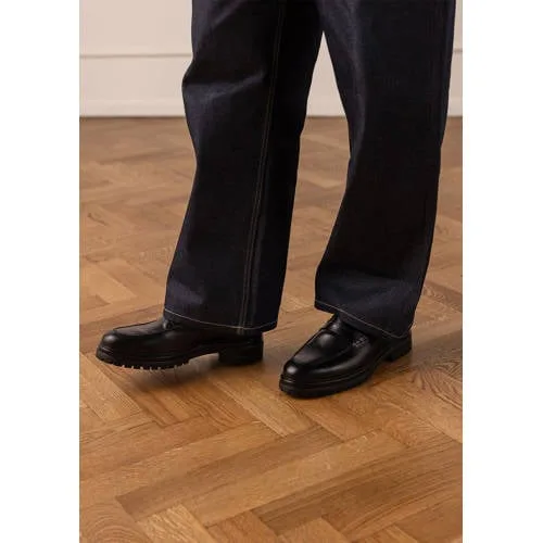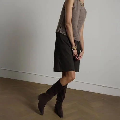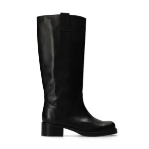 Manfield – Dames – Zwarte leren hoge laarzen met brede schacht –