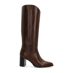 Manfield – Dames – Donkerbruine leren enkellaarsjes met hak –