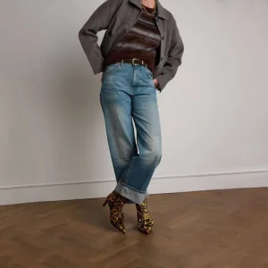 Manfield enkellaarzen met strik en panterprint cognac/zwart