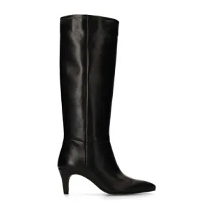 Manfield – Dames – Zwarte hoge leren laarzen met hak –